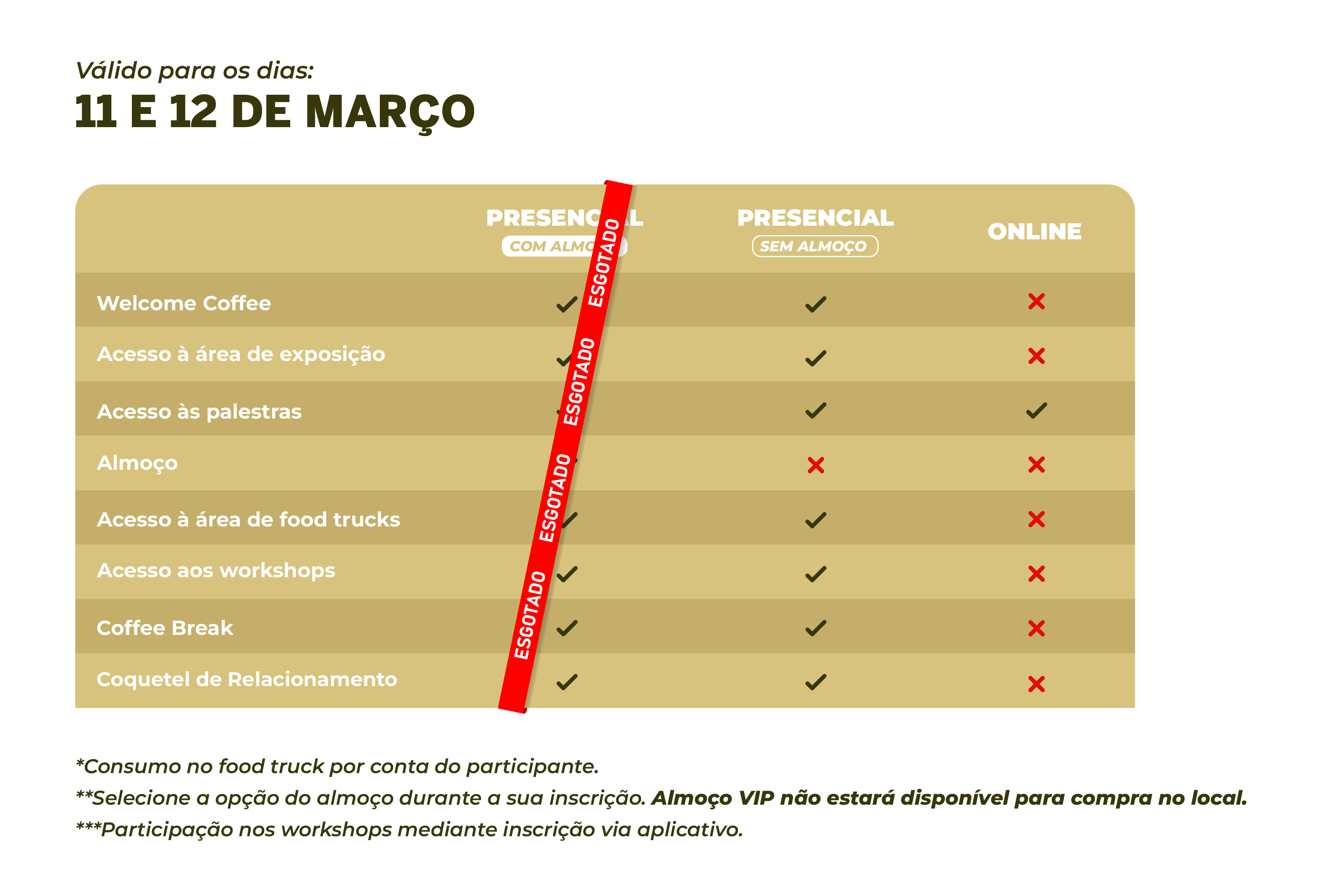 *Almoço VIP não estará disponível para compra no local.
