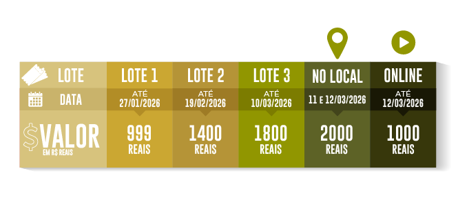 Atenção: os ingressos com almoço incluso estão esgotados. Os ingressos sem almoço seguem disponíveis, lembrando que para essa modalidade, o evento contará com uma área de food trucks, com opções de refeição disponíveis para aquisição no local