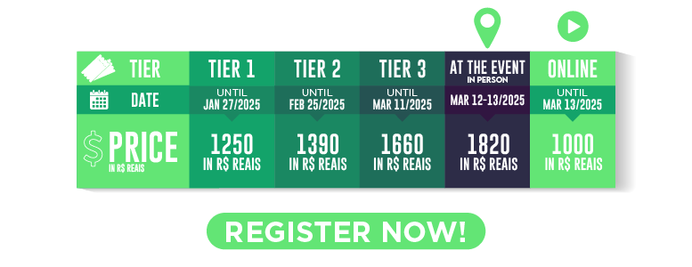 Registering to DATAGRO events is only accepted electronically via DATAGRO Conferences' official website. Any other form of application must be validated by a document signed and recognized by DATAGRO.